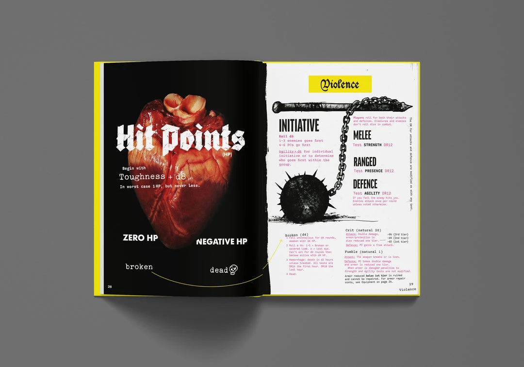 MÖRK BORG is designed by Pelle Nilsson (Ockult Örtmästare Games) and Johan Nohr (Stockholm Kartell), and published by Free League Publishing.