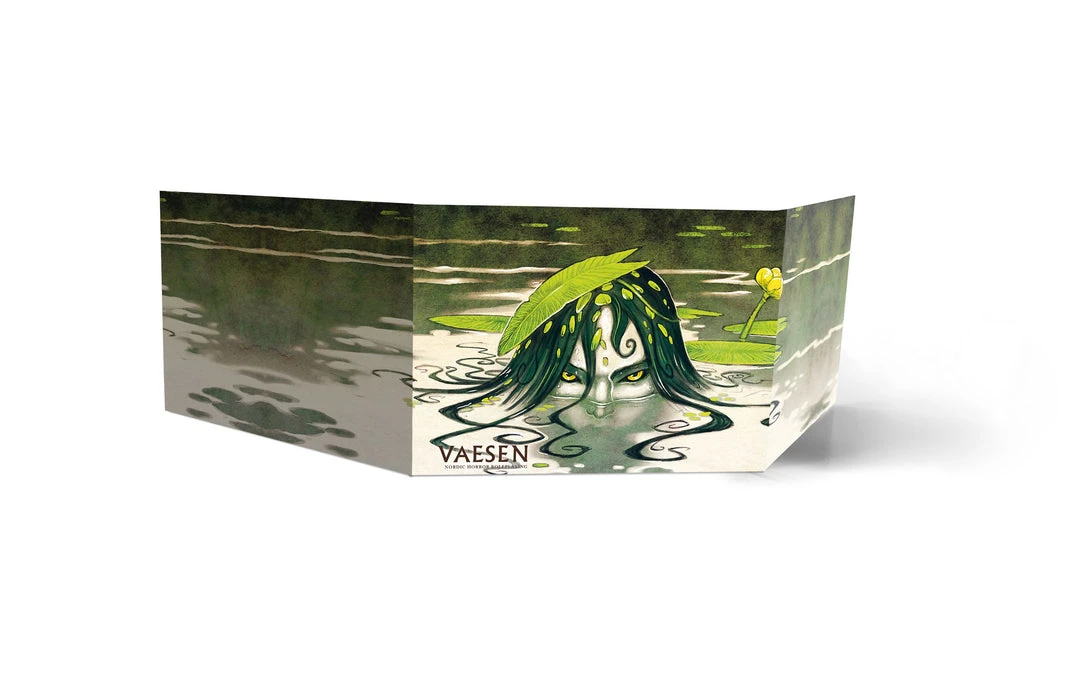 A deluxe Gamemaster’s screen in landscape format for Vaesen – Nordic Horror Roleplaying. It features Johan Egerkrans’s art on the outside and a host of useful tables and important information on the inside, while keeping the GM’s plans hidden from the eyes of inquisitive players. Included in the package is also is a large double-sided poster featuring a beautiful map of the Mythic North setting on one side and the town of Upsala on the other (size 432x558mm).