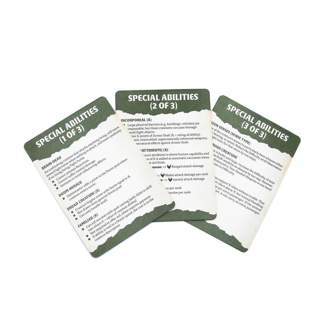 - In addition to creatures and characters, you will find quick reference cards on rules for creature categories, using groups of characters, and a definition of special abilities such as Fear or Immunity.