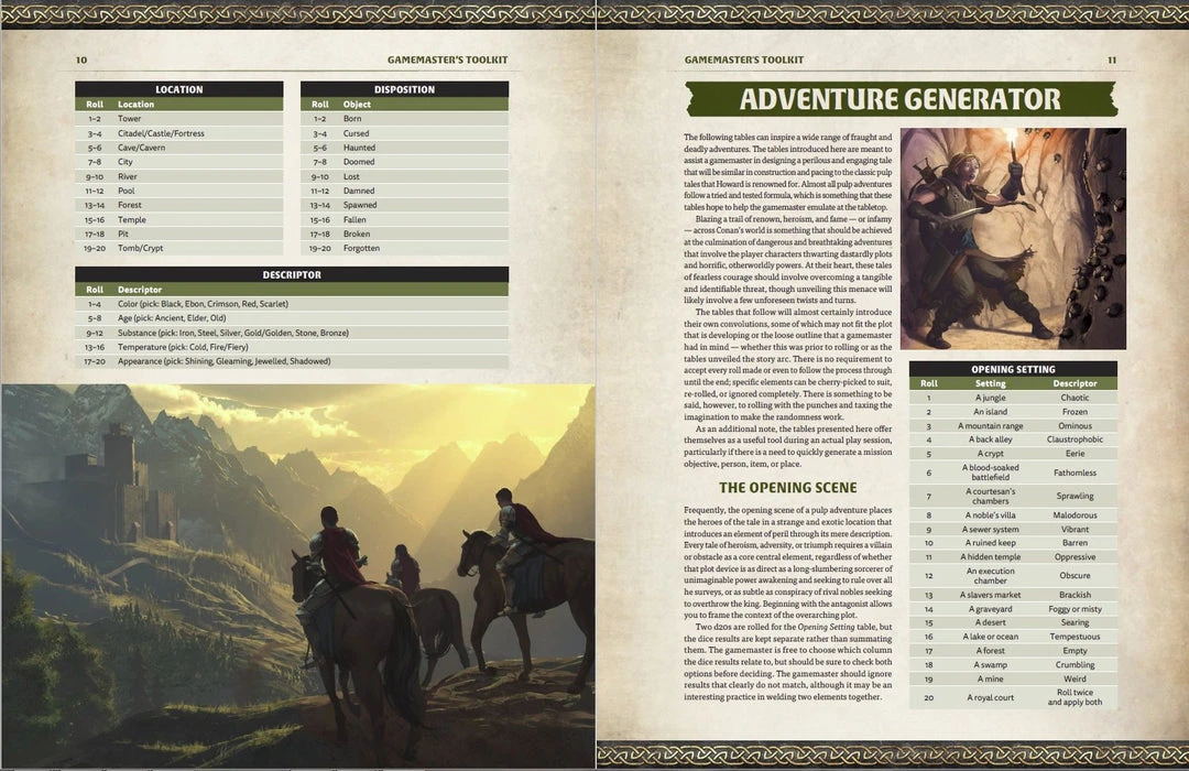 - Dip your quill into that deep reservoir of imagination, and write adventures to turn your player’s deeds into legends worthy of Conan himself!