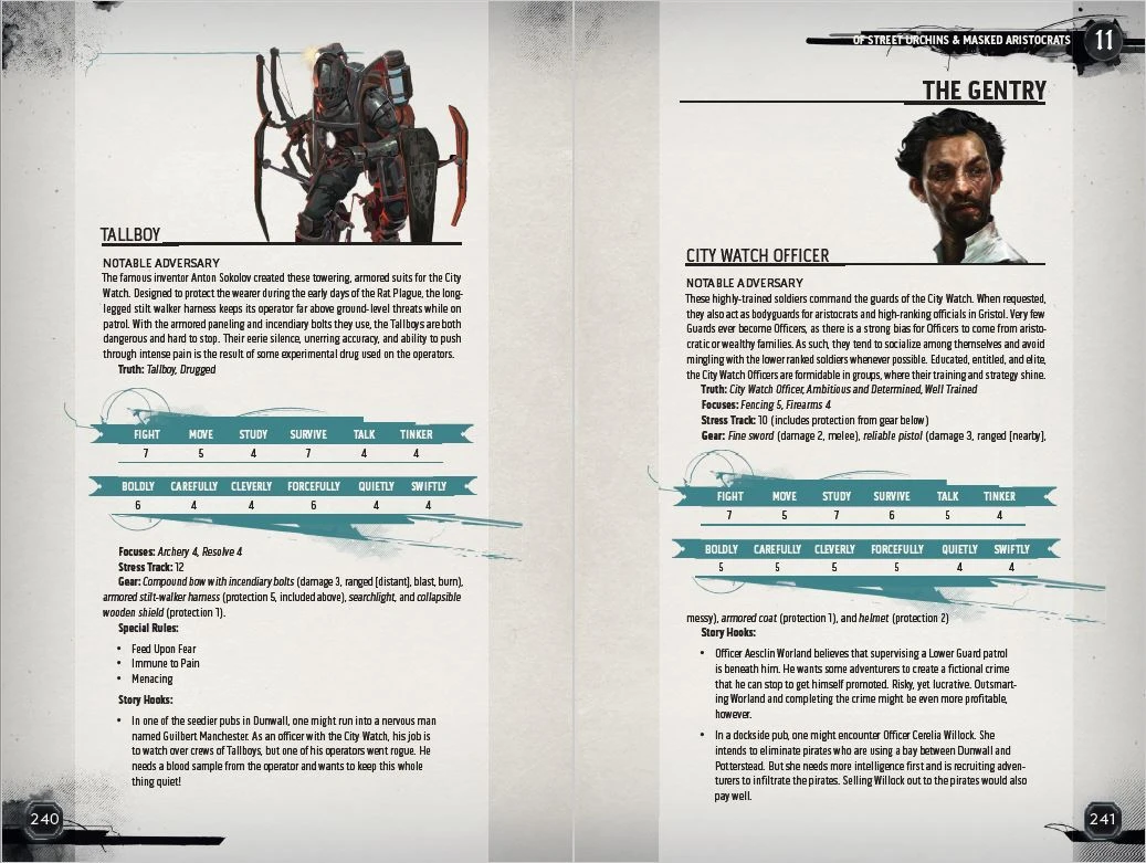 In Dishonored: The Roleplaying Game, players delve into the turbulent Empire of the Isles, to tell stories of occult lore, intrigue and drama. The Dishonored Corebook contains all the rules and background information you need to kickstart your adventure. It features a streamlined version of the 2d20 System that excels at narrative play while focusing on the core themes of Dishonored with mechanics for Chaos and unique ways to track stealth, intrigues and faction reputation.